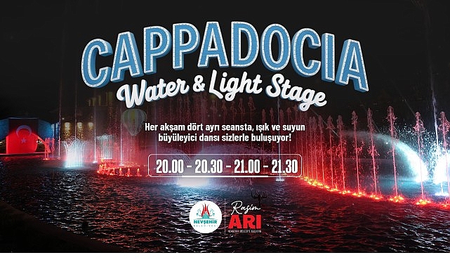 Nevşehir Belediye Başkanımız Rasim Arı tarafından kente kazandırılan Kapadokya Su ve Işık Sahnesi (Cappadocia Water – Light Stage) Gösteri Havuzu her gün binlerce misafir ağırlıyor.