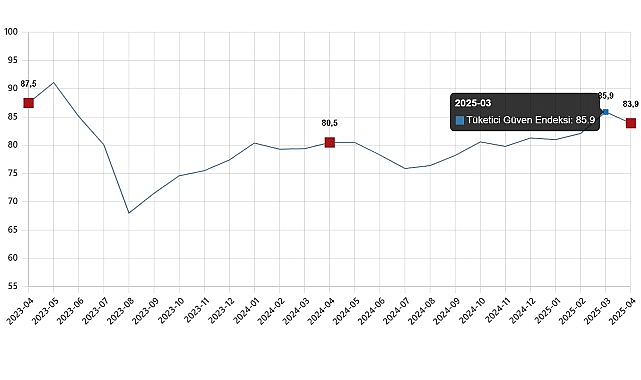 Türkiye İstatistik Kurumu ve Türkiye Cumhuriyet Merkez Bankası işbirliği ile yürütülen tüketici eğilim anketi sonuçlarından hesaplanan tüketici güven endeksi, Mart ayında 85,9 iken Nisan ayında %2,3 oranında azalarak 83,9 oldu.